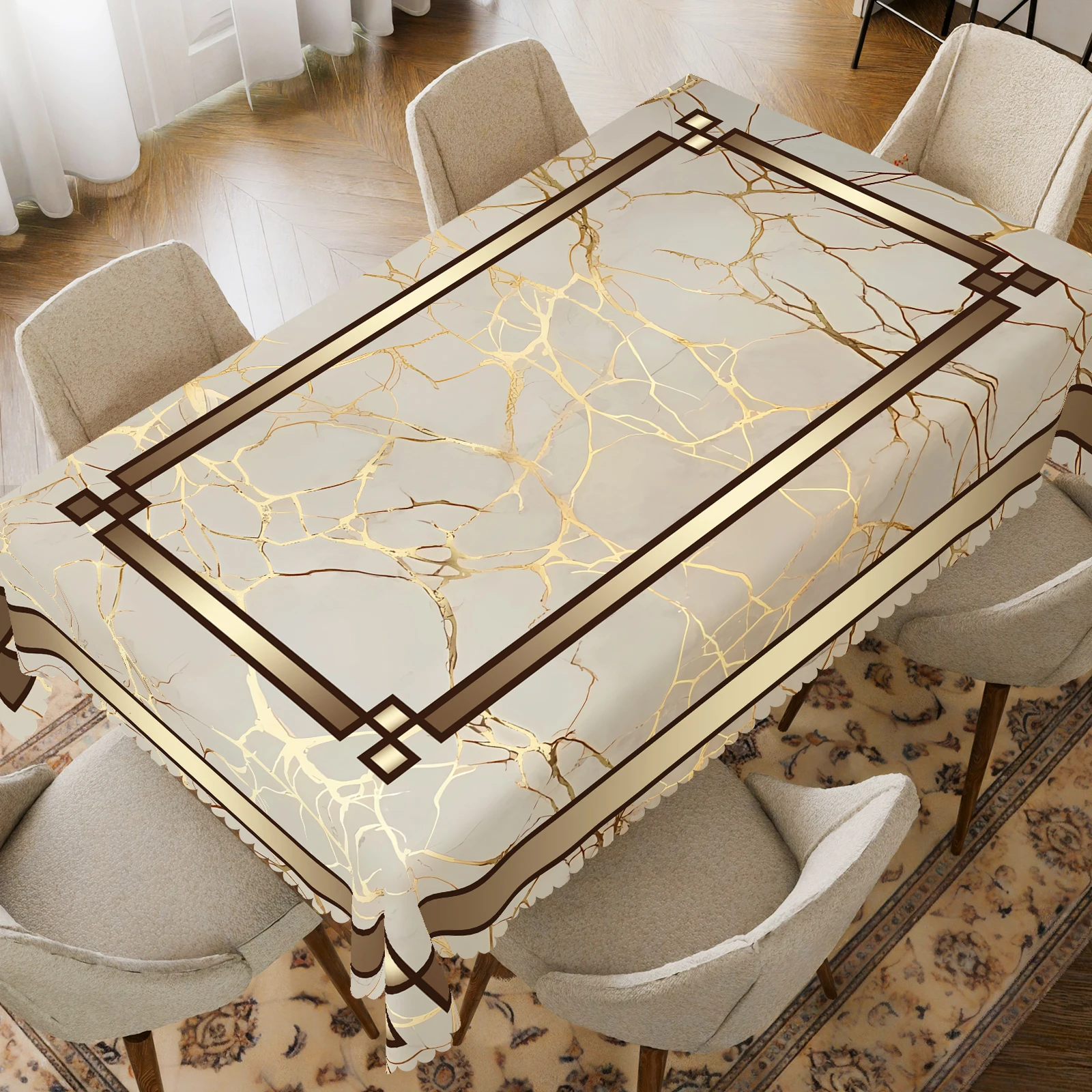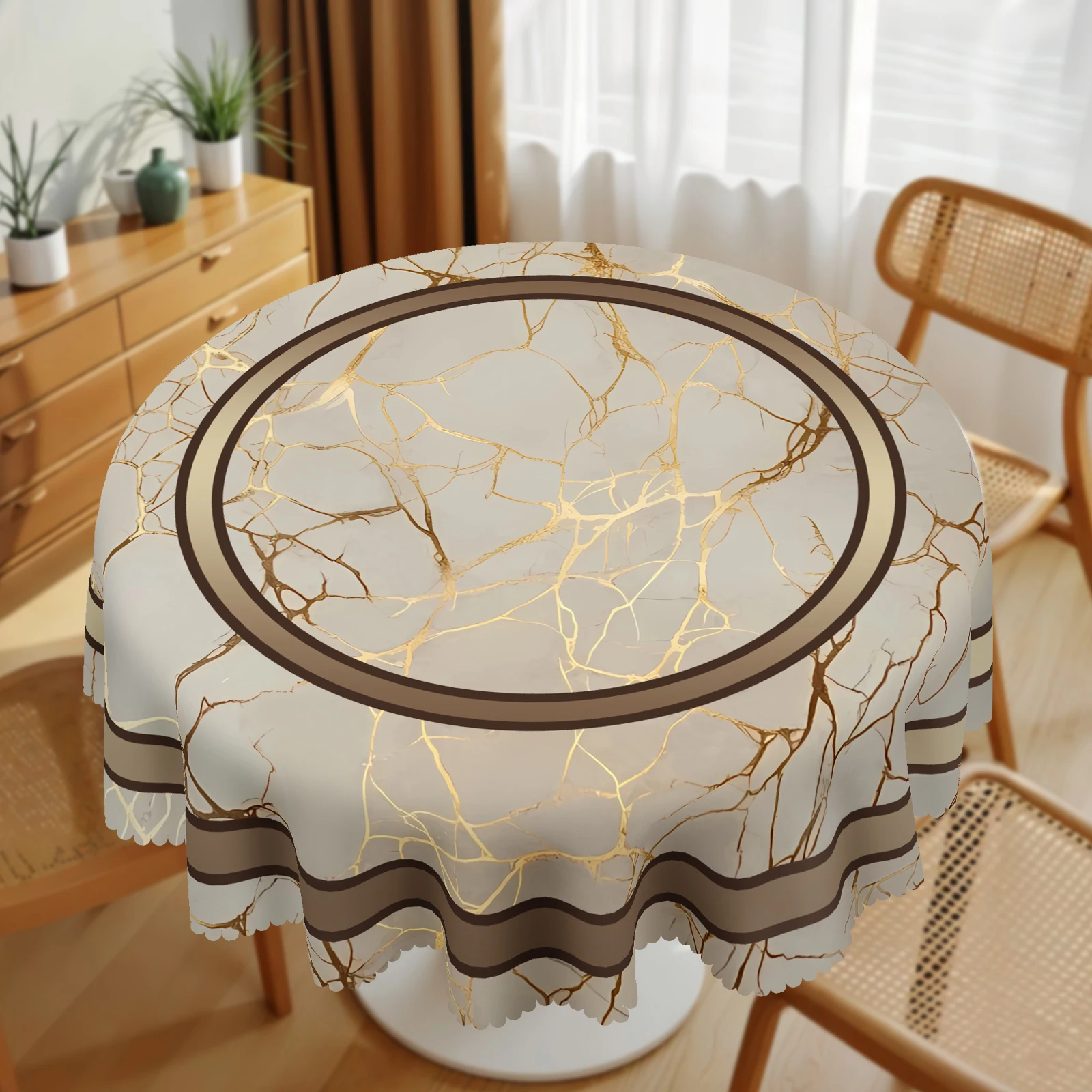 1 Piece, Elegant Dark Gold Marble Texture Tablecloth + 4 Self-Adhesive Stickers,