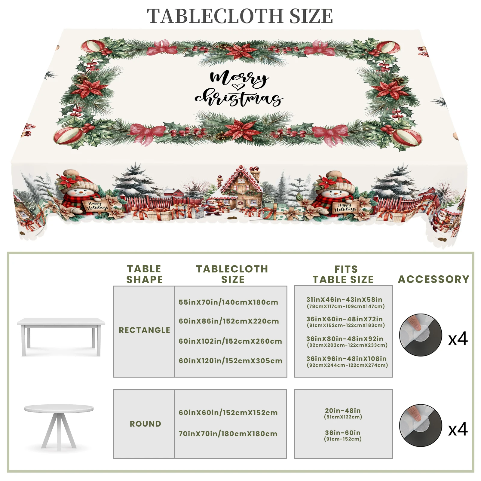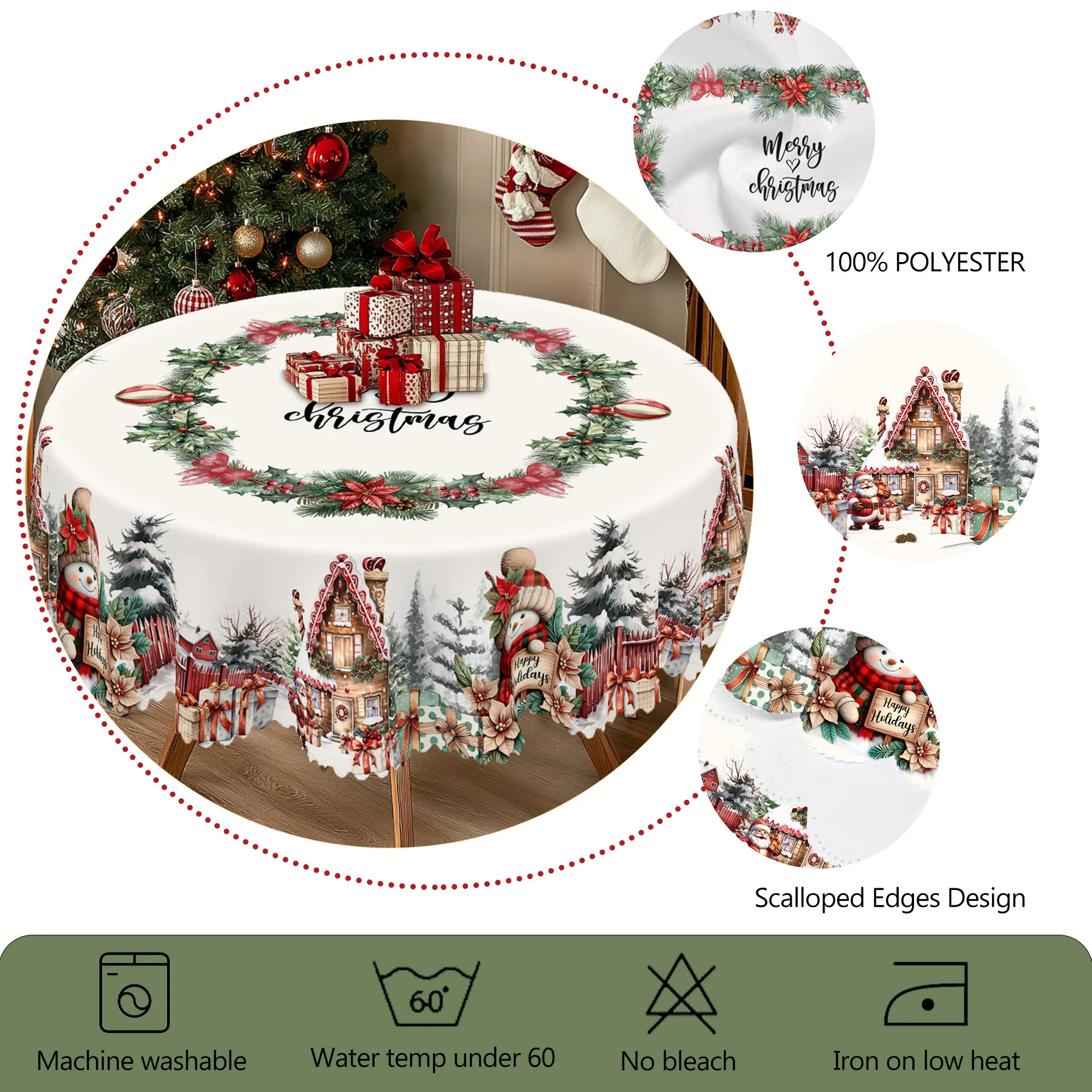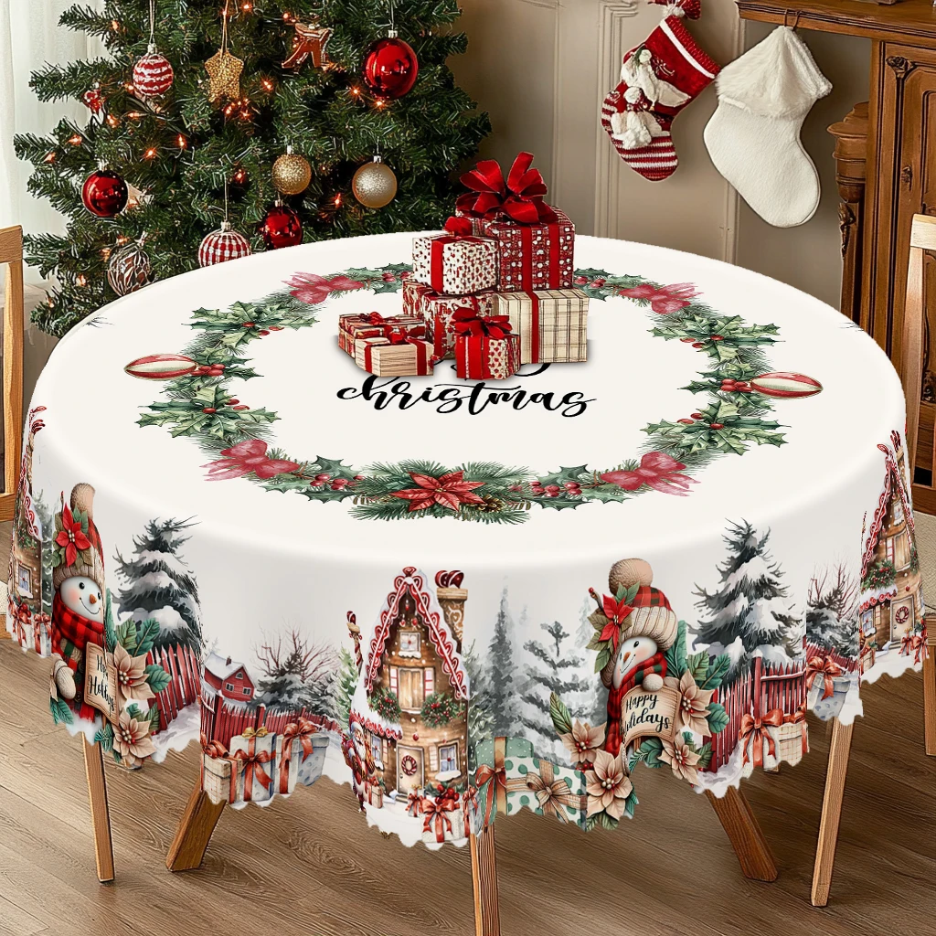 1 Piece of Christmas-Themed Printed Tablecloth, Vintage Country Farmhouse Style,