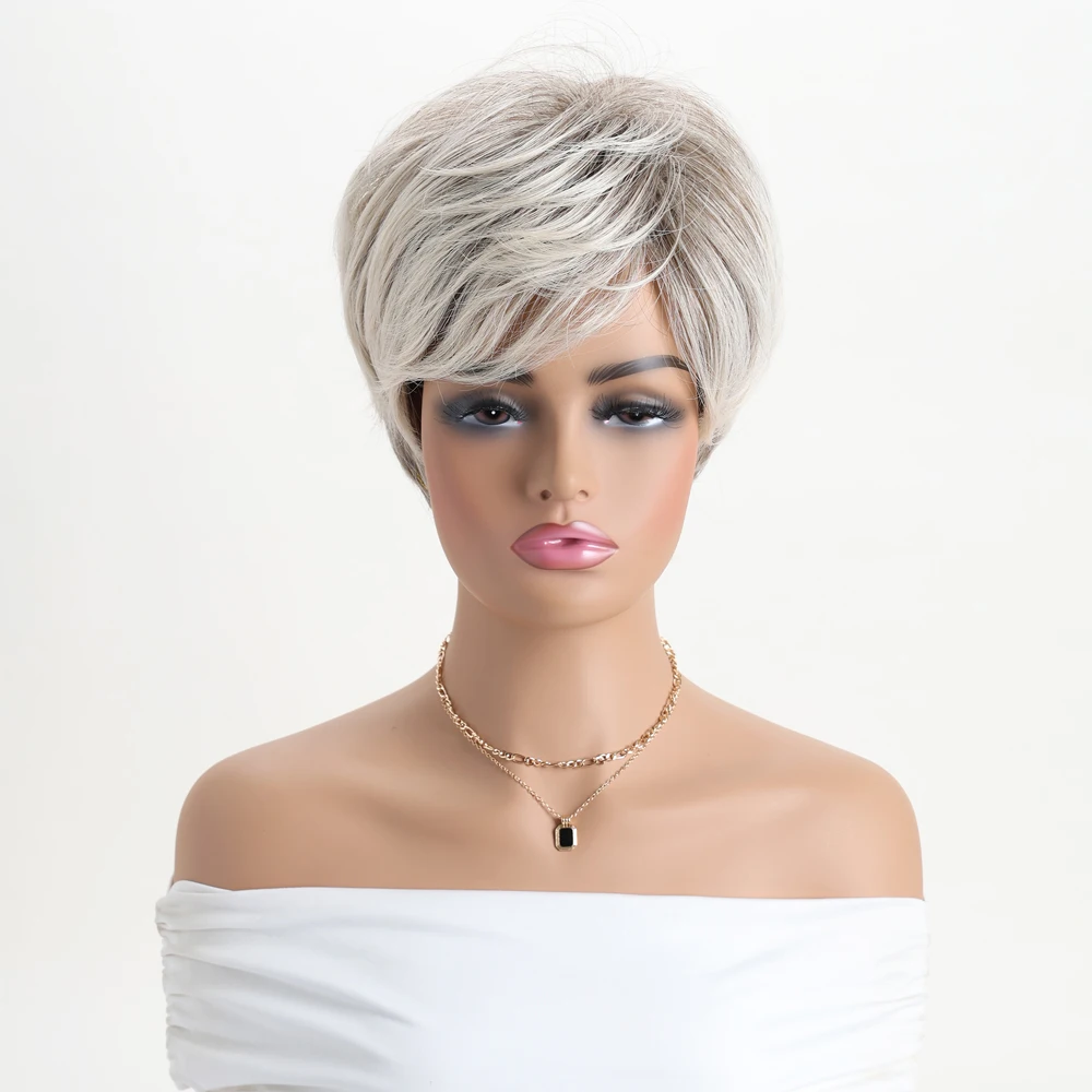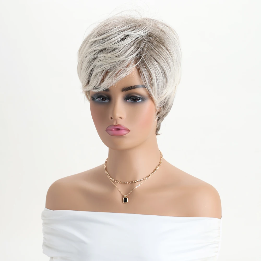 10 Inch Natural Synthetic Mixed Gold Wigs For Women Short Curly Wig Daily Party