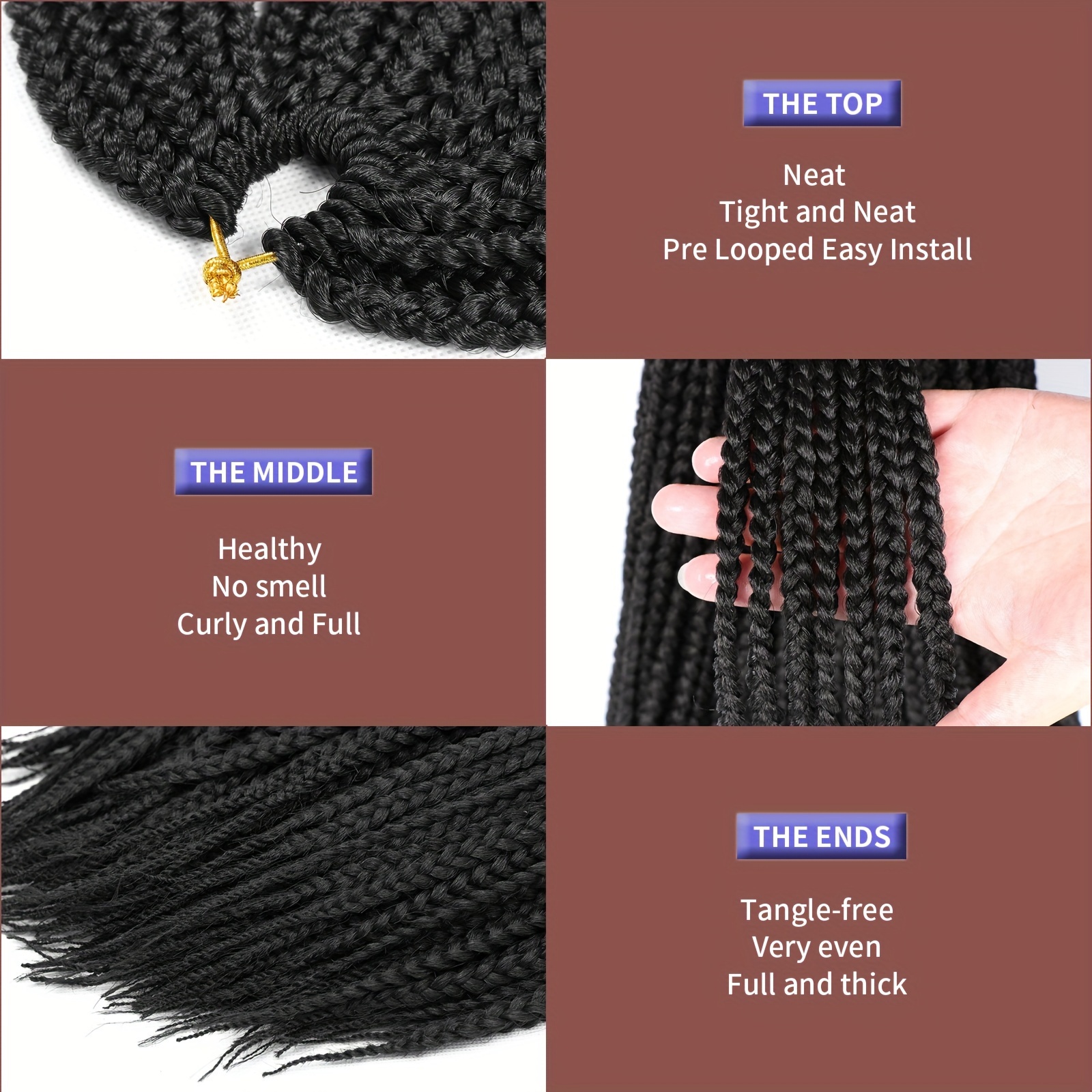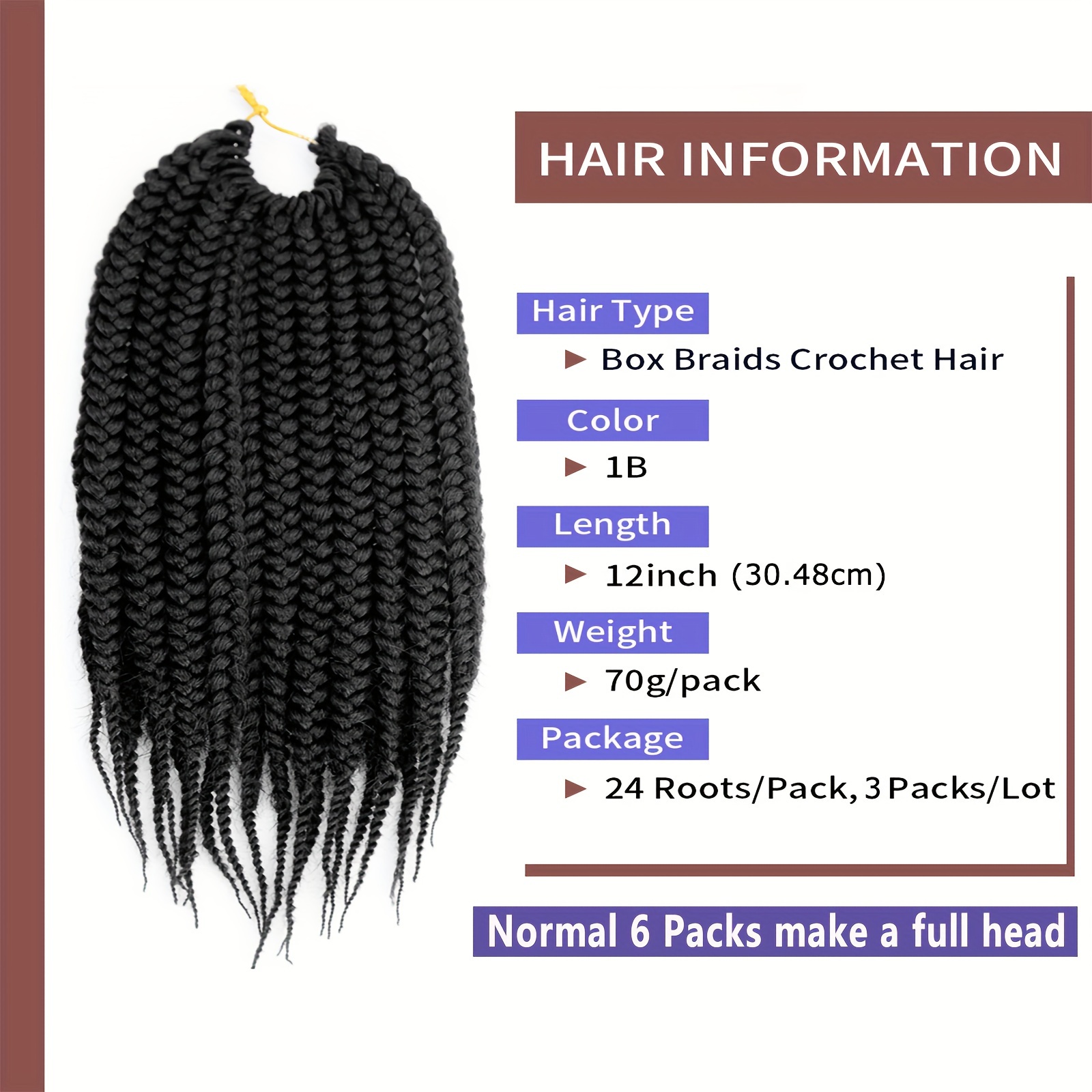 12-Inch Box Braids Crochet Hair, Available in 3 Packs with 72 Strands. Pre-Loope