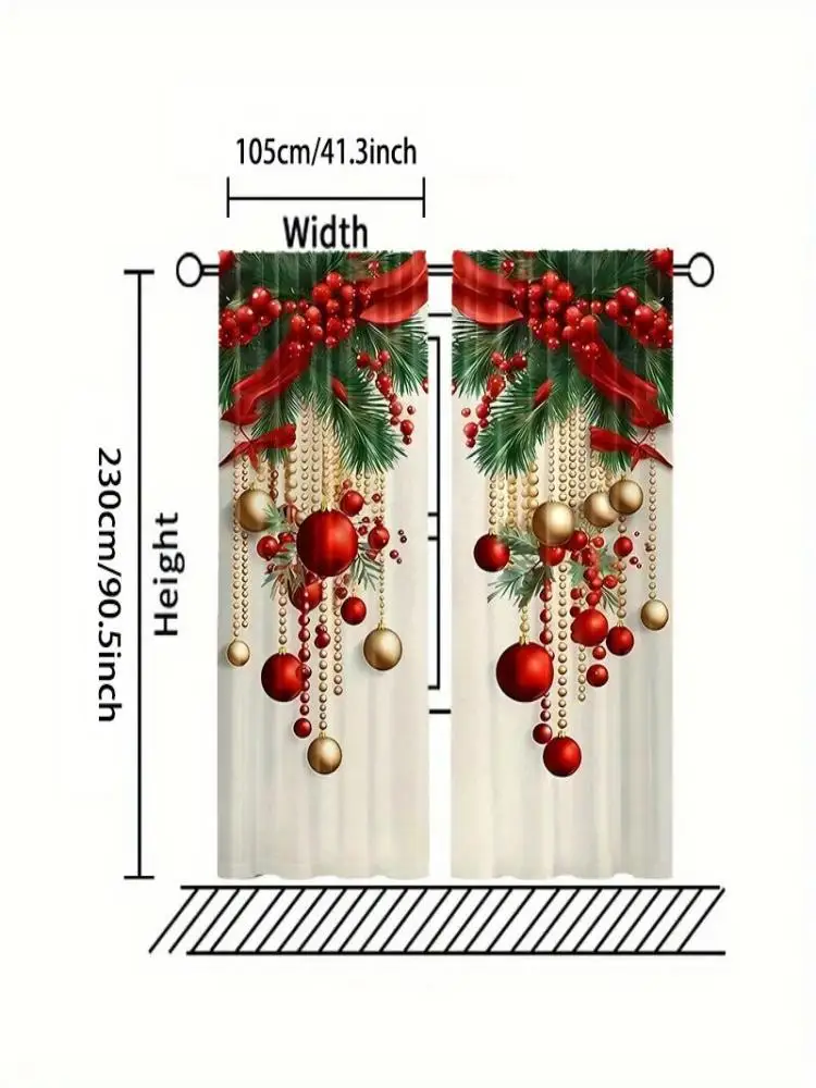 2 pieces of Christmas printed curtains, pole bag curtains 42*84, bedroom and liv