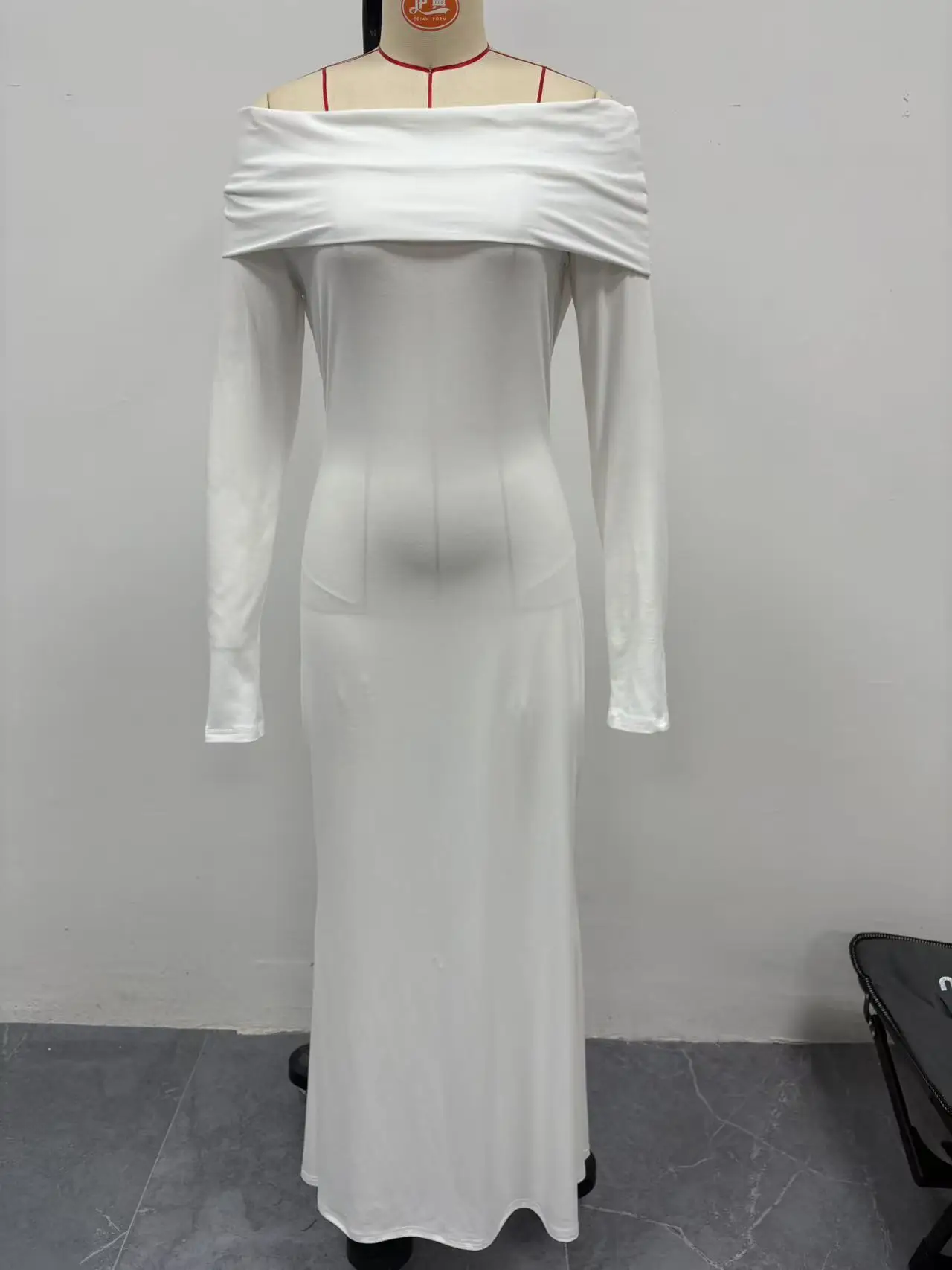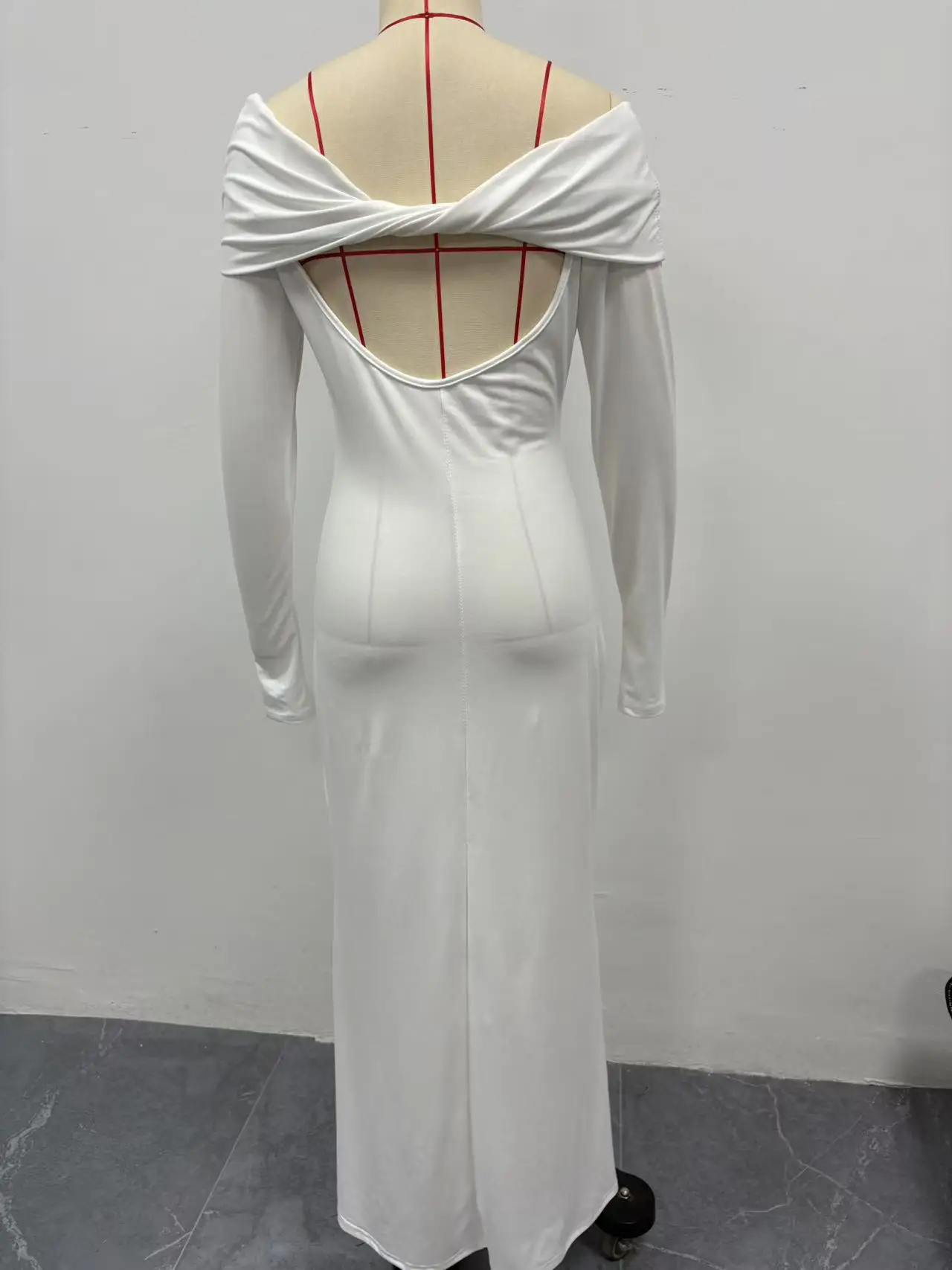 2025 Women Fashion White Wedding Dress Spring Autumn One-shoulder Slim Backless