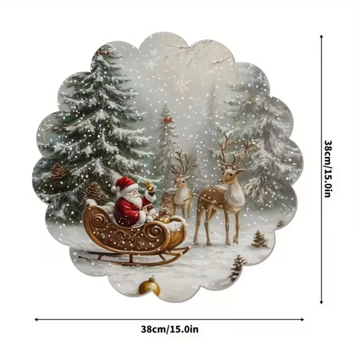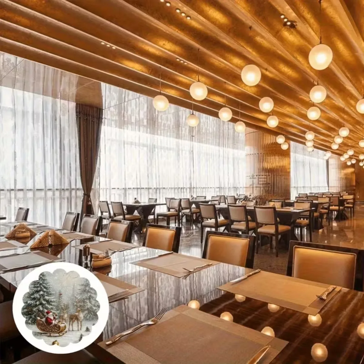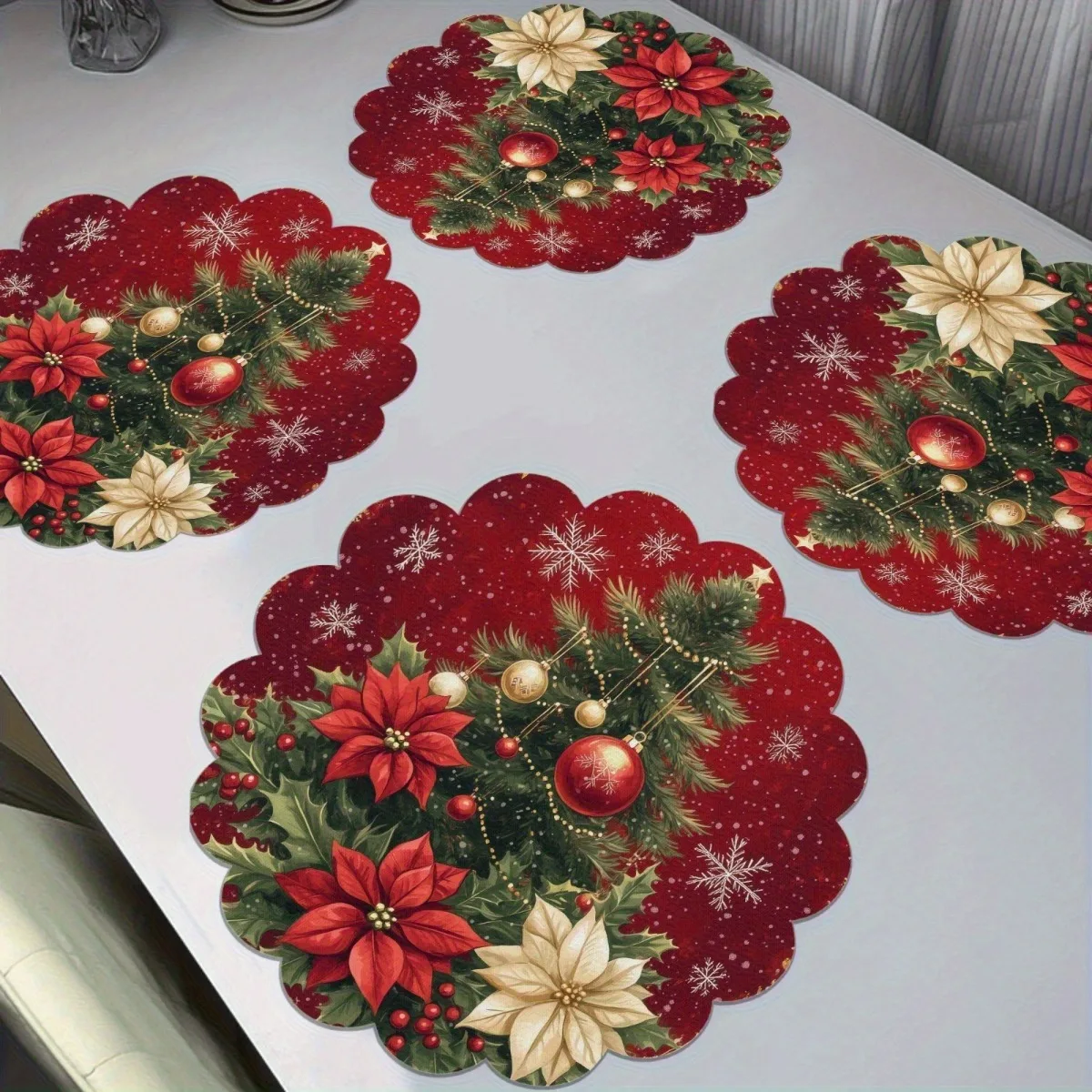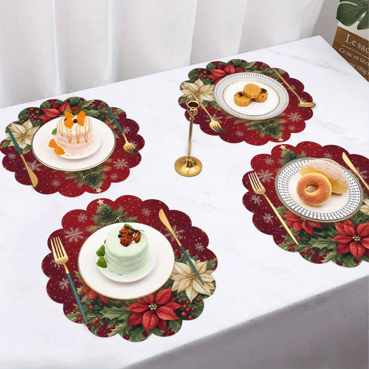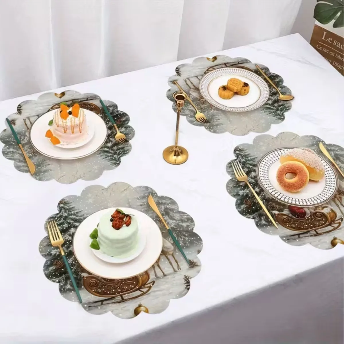4PCS Christmas Placemats Non Slip Heat Resistant Circular Waves Design Winter Ch