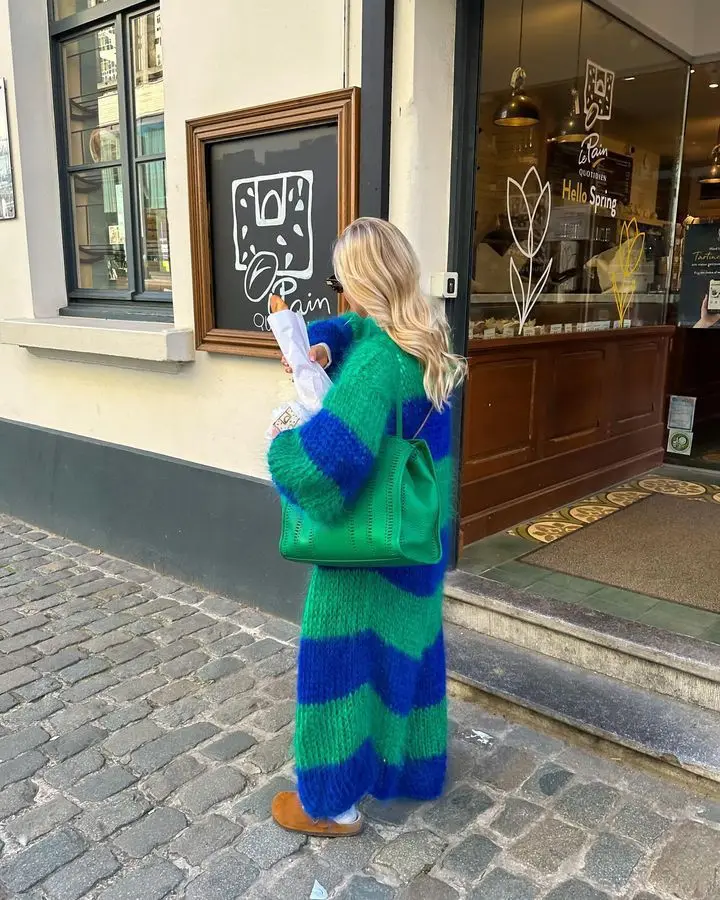 Cardigan Women Long Coats Striped Full Sleeve Knitted Sweaters Casual Loose Coat