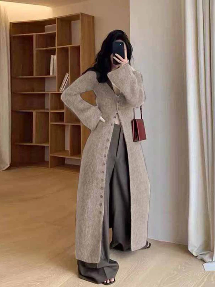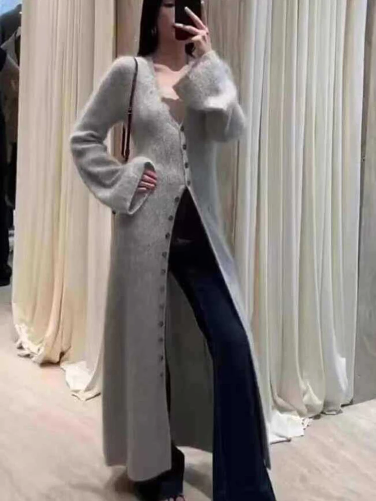 Casual Loose Long Cardigan Coats Korean Vintage V-neck Knit Jackets Women Fashio