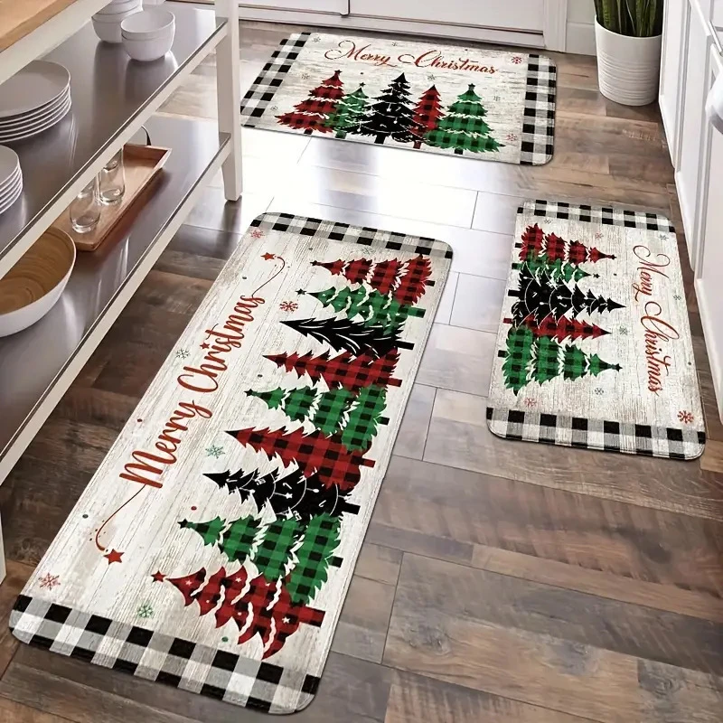 Christmas Cookies Tree Red Color Floor Mat Home Kitchen Non-slip Mat Merry Chris