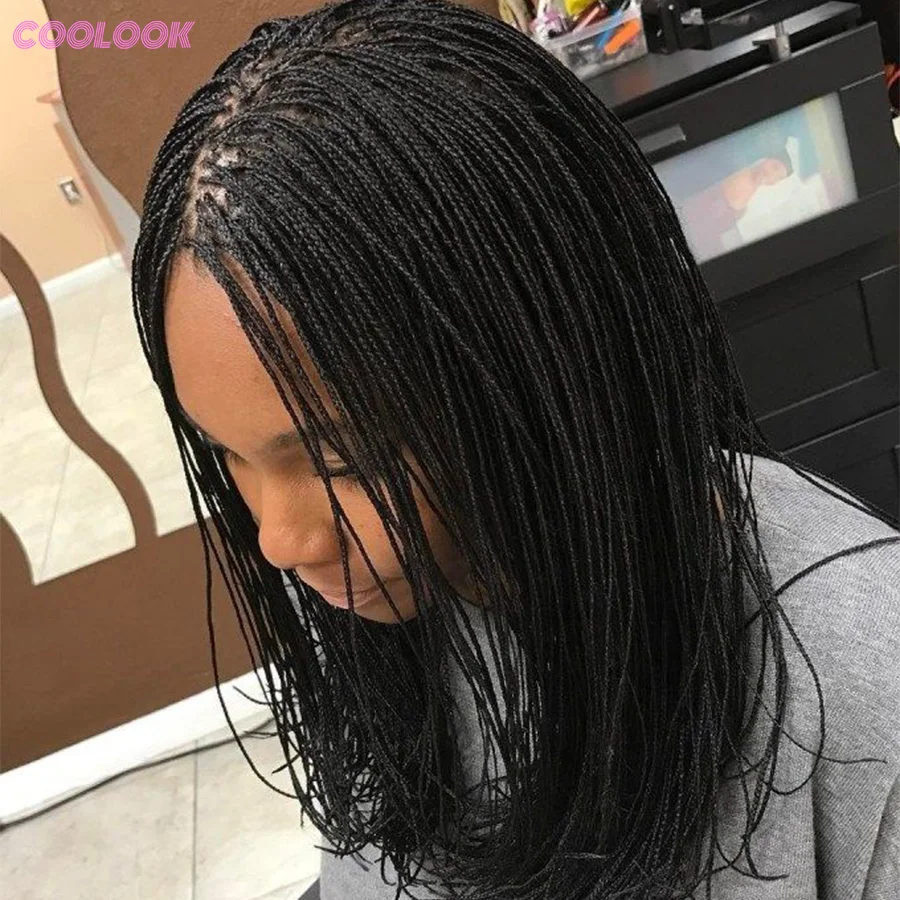 Short Bob Micro Twist Braided Wigs Knotless Box Synthetic Braided Lace Front Wigs 12'' Straight Tiny Thin Cornrow Wig For Black Women
