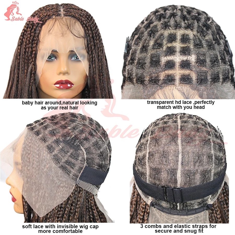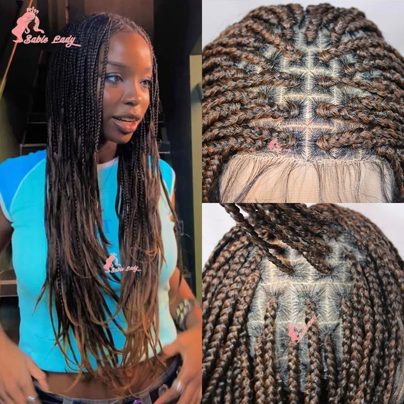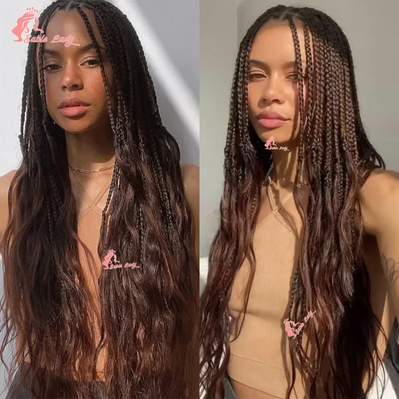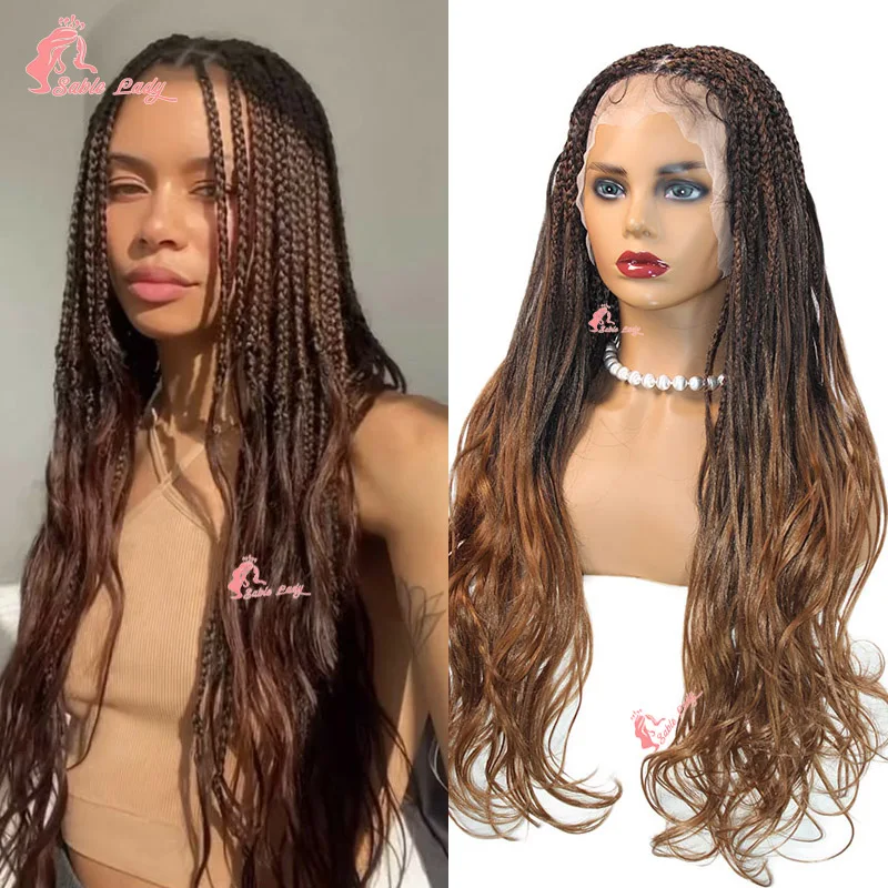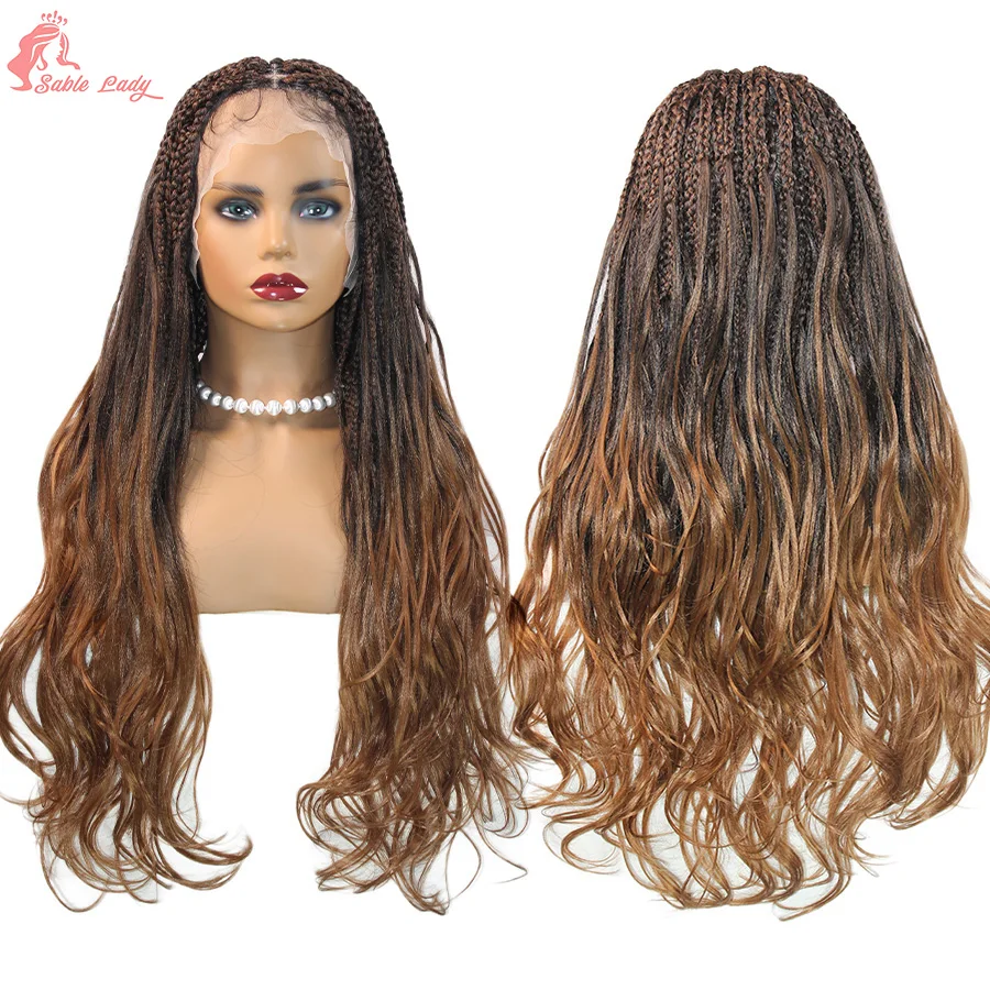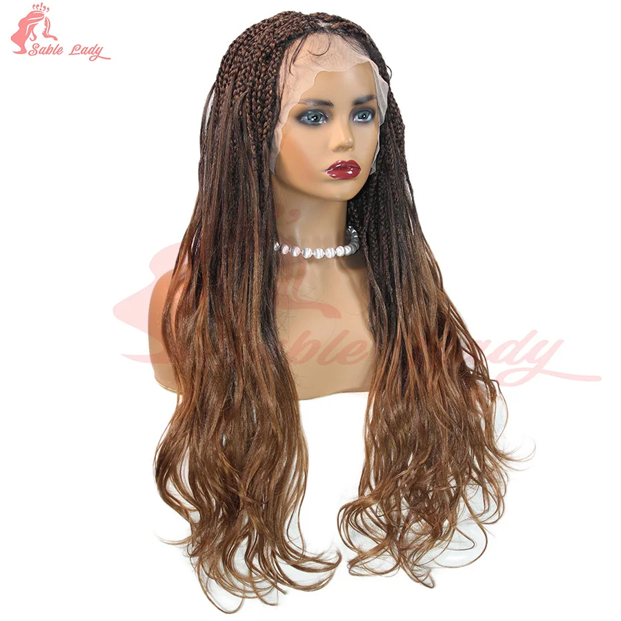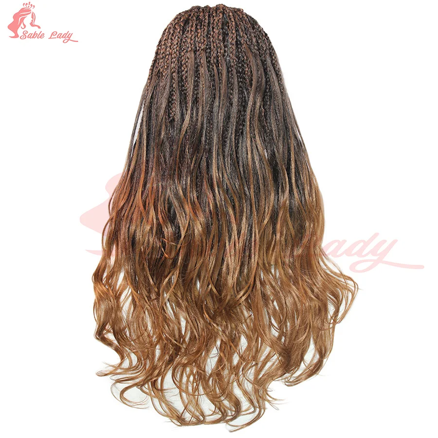 Synthetic Colored Braided Wigs Box Braided With Curly Hair End Knotless Blonde Full Lace Wig For Afro Black Women 28Inch
