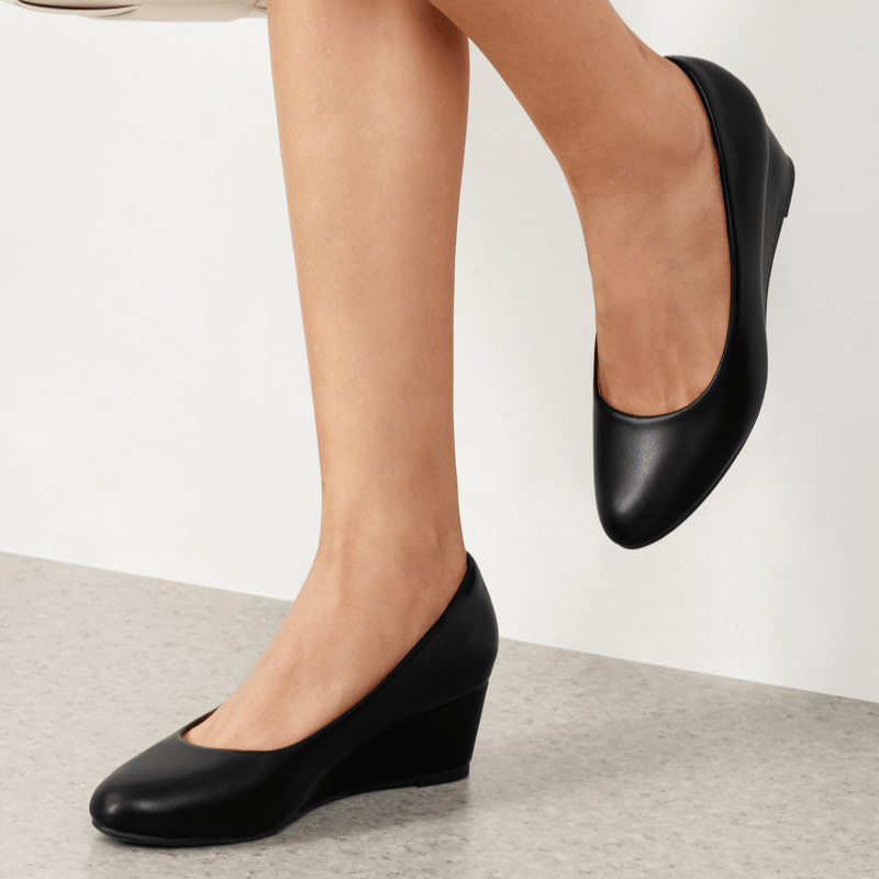 Women's Low Wedges Heels Closed Round Toe Pumps Comfortable Slip On Dress Work Wedding Shoes Must-Have Women Wedge Heels Comfortable Wedge Heel Slip-On Design